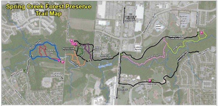 Spring Creek Forest Preserve contains old-growth hardwood bottomland forest and native prairie areas along Spring Creek which are a haven of towering trees and unusual wildflowers. Scientists, conservationists, and naturalists have studied this forest community and determined it is one the few remaining old growth forests in the Blackland Prairie eco-zone of north central Texas.