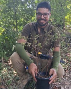 Meet Gustavo Rojas with rescued coralberry (Symphoricarpos orbiculatus )