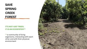The Executive Committee usually meets once a month. The meetings are open to the public. For information, please contact us at springcreekforestpreservation@gmail.com.