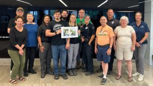Folks from the Society, plus the new Garland Parks Director, Kari Pacheco, met them recently in the city hall lobby, to thank them for taking such good care of the forest, and to chat for a while over donuts.