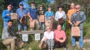 Recently, they worked in our Preserve to remove bags and bags of debris left behind by several homeless people camping in the forest. First, signs were posted at each site, alerting the homeless that they had one week to remove any items they wanted to keep. Then the team arrived on a hot, sultry north-Texas day. They already knew that the Preserve is a delicate habitat, so instead of using heavy equipment and destructive vehicles that are available to them, they did the whole job by hand, leaving a clean, un-ravaged space that can quickly recover from the campers.